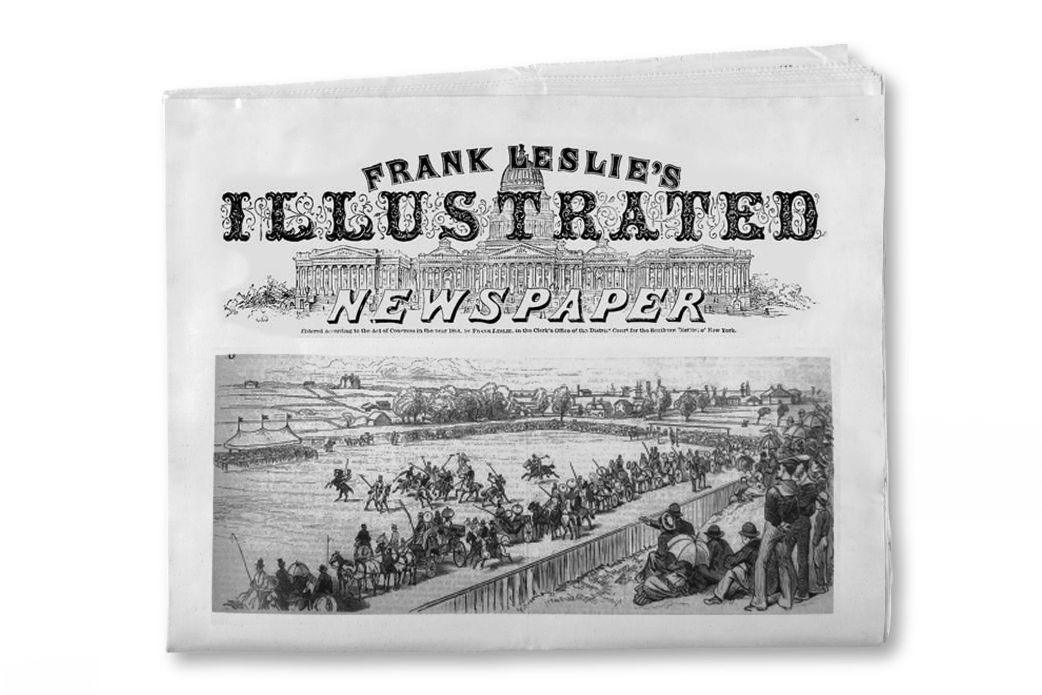 The original Polo Field appeared in Frank Leslie‘s illustrated newspaper on September 22, 1877. From the rocks, spectators overlooked the 9 foot high wooden fence from Deadhead Hill, now the rocky outcropping of Morton Park. A reporter described the area and said that he thought that no better place could’ve been chosen for the new sport.